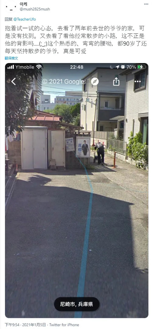 最近,一位日本網(wǎng)友在打開Google Earth的街景模式,準(zhǔn)備”云回家“看看時(shí),瞬間淚目了... 原來,由于地圖不是實(shí)時(shí)更新的,他在自己熟悉的家門前,看見了自己七年前去世的父親,所有回憶在那一刻涌上心頭。
