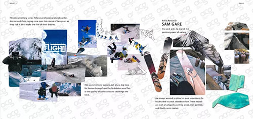 除了抽象的主題外,我還選擇了有實物的主題。比如運動類的滑雪,因為這是我最喜歡的運動,選擇自己喜歡的事情可以帶來更多的靈感。我從滑雪的場地,滑雪的動作入手,展開了許多調(diào)研,結(jié)合自己的實際經(jīng)驗,發(fā)現(xiàn)了許多有趣的元素可以融合到服裝設(shè)計當(dāng)中。