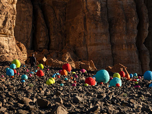 作品《落石花園》的靈感來源于 Alula 沙漠山谷的砂巖峭壁底部的天然落石。