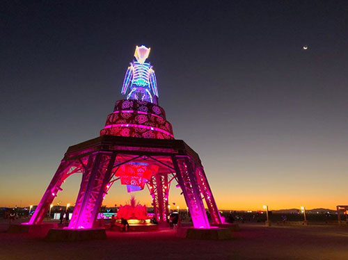 這座由 Michael Benist 創(chuàng)作的雕塑在去年的黑巖城中十分閃亮,在炙熱的陽光下,荒蕪的沙灘中,看著波光粼粼的“樹人”,不知道你心中會不會留下一絲莫名的感動?