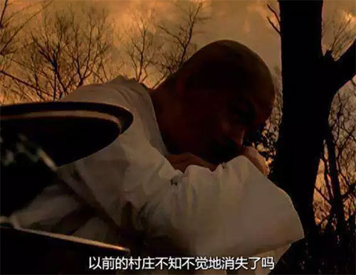 這一切令他感到無助、憤怒。他無家可歸,最終選擇了與之對抗,戰(zhàn)斗的過程中卻被那句“以前的村子永遠(yuǎn)都回不來了”所擊中,最終清醒過來,或許是那一瞬間,他意識(shí)到,時(shí)代洪潮中,自己只是一粒灰塵,曾經(jīng)那樣美好,抬頭與星星對視的寧靜夜晚,再也不會(huì)有了。最后他接受現(xiàn)實(shí),消散在曾經(jīng)的村落之中。